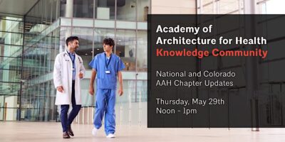 October 16th, from 1 – 5pm, at CSU Spur – Hydro Building, in Denver, AIA Colorado’s Academy of Architecture for Health Knowledge Community (AAH) and Women in Healthcare (WIH) present an interactive half-day event themed Reimagined Care. Oriented to both AEC & healthcare professionals, don’t miss this chance to connect with peers, share ideas, and envision the future of healthcare. More information and RSVP here.